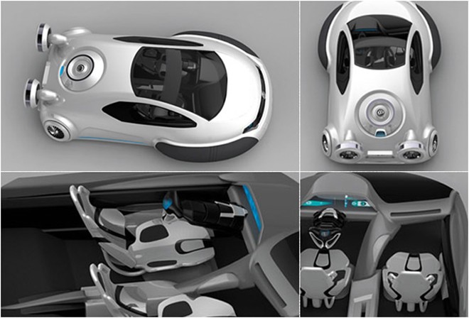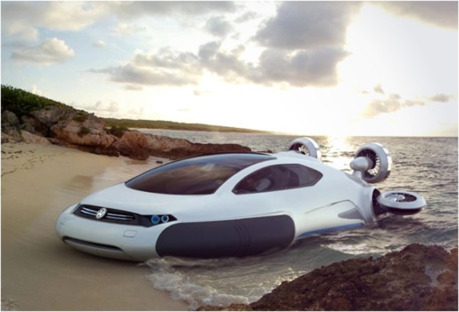 Imagined by young Chinese designer, 21 year old Yuhan Zhang, a recent graduate in Industrial Design with honors from the University Xihua-China, The “Volkswagen Aqua” is an amazing concept, a hybrid vehicle half way between a car and a hovercraft. The vehicle is powered by Hydrogen and propelled by impellers.