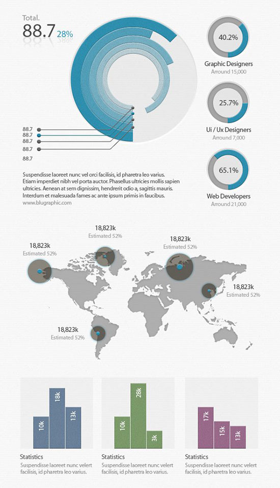 Nowadays in Designer’s world, people want quick access to information. People on the Internet need illustration when presented with complex data. It is for this reason that Infographics came into being.