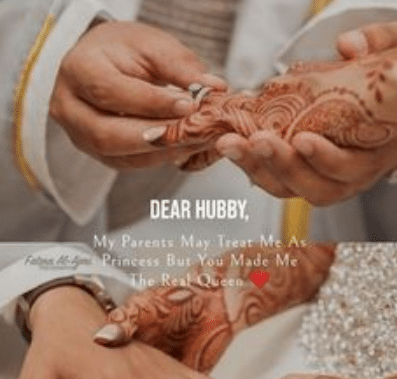 Dear Hubby My parents treat me as princess but you made me the real queen.