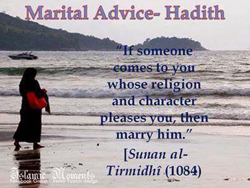 Marital Advice – Hadith: If someone comes to you whose religion and character pleases you, then marry him. [sunan al tirmidhi 1084]