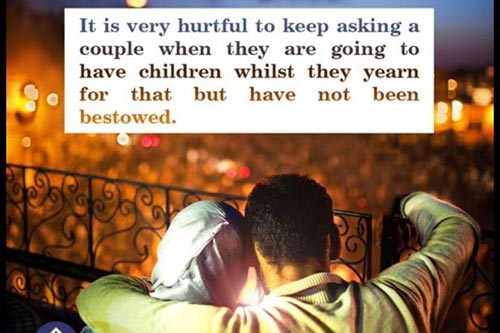 It is very hurtful to keep asking a couple when they are going to have children whilst they yearn for that but have not been bestowed.
