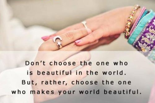 Don’t choose the one who is beautiful in the world. but, rather, choose the one who makes your world beautiful.