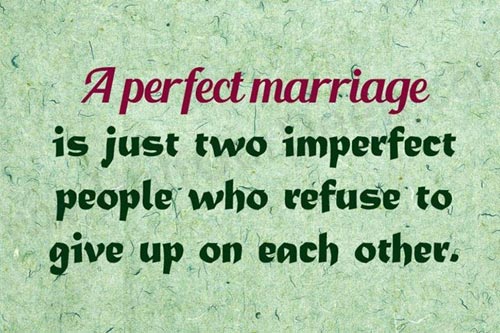 A perfect marriage is just two imperfect people who refuse to give up on each other.