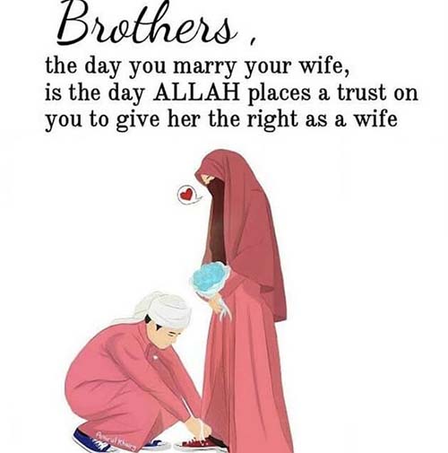 Brothers, The day you marry your wife, is the day Allah places a trust in you to give her the right as a wife.