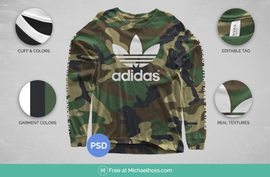I’m pretty stoked on this week’s free long sleeve mockup. There’s very few of them out there, and not many for free (at least at the time of this post). When you open the file you will notice everything is easy to edit.