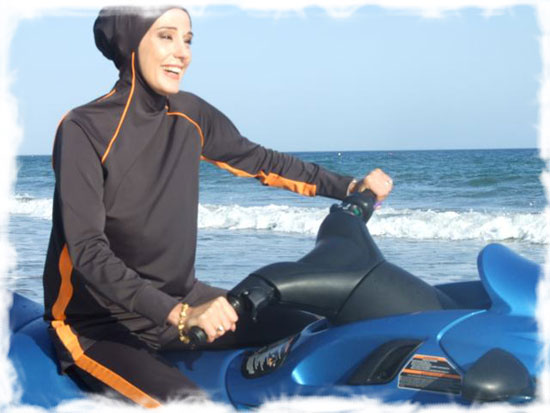 Muslim Swimwear (Burkini): Before and still women are using the traditional Abayas as swimwear or they simply avoid swimming. Now the Muslim Swimwear for women are being popular than ever as fashion swimwear for muslims in many countries like Australia, USA, Canada Etc, its very light and comfortable, therefore it gives a lot of freedom in the water. See Also : Muslim Hijab Wedding Dresses
