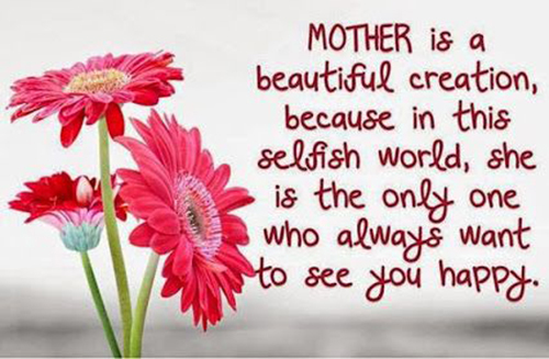 Mother is a beautiful creation because, in this selfish world, she is the only one who always wants to see you happy.
