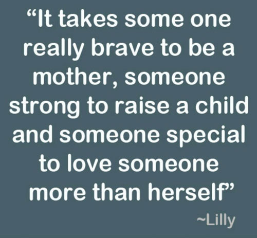 “It takes someone really brave to be a mother, someone strong to raise a child, and someone special to love someone more than herself”.