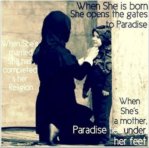 Upon her birth, she unlocks the gates to paradise. In marriage, she accomplishes half her faith. As a mother, paradise resides beneath her feet.