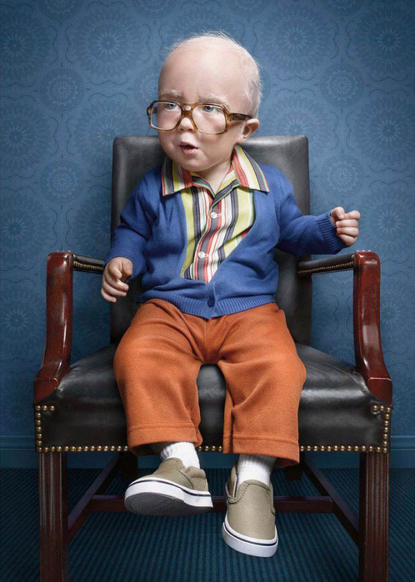Photographer Zachary Scott has created an amazing series of kids photography ideas that depicts kids as seniors. Zachary Scott used makeup, prosthetics, and photo manipulation for this classic kids photography,