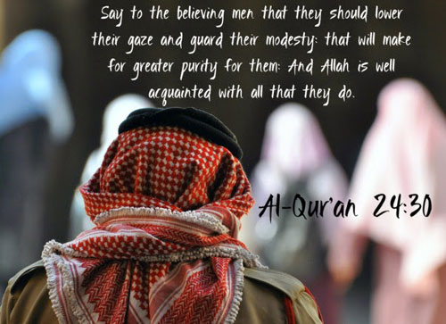 “Say to the Reliving men that they should lower their gaze and guard their modesty. that will make for greater purity for them and ALLAH is well acquainted with all that they do.” Al-Quran 24:30