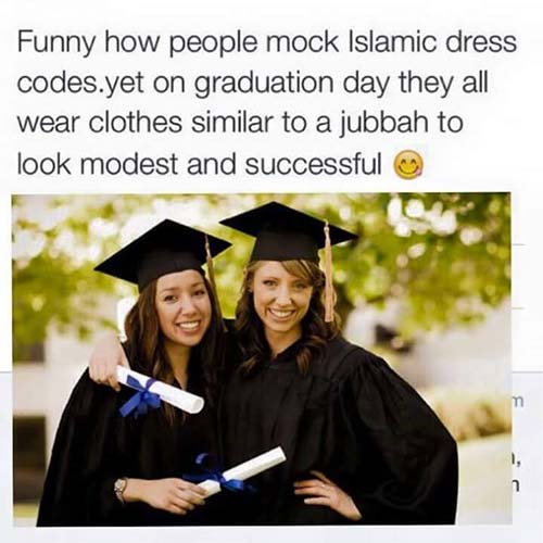 “Funny how people mock Islamic dress codes. yet on graduation day, they all wear clothes similar to a jubbah to look modest and successful.”