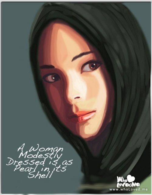 “Everything precious is covered!!! A woman modestly dressed is like a pearl in its shell.”