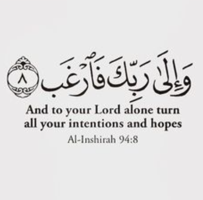 And your Lord alone turn all your intentions and hopes (Surah Inshirah| 94:8)
