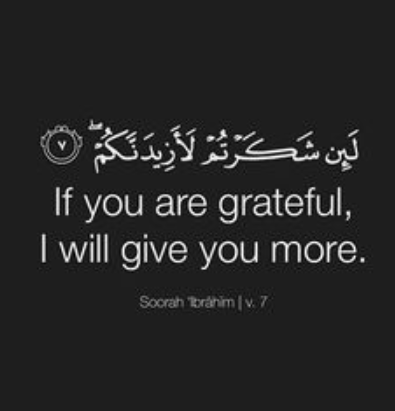 If you are grateful i will give you more (Surah Ibrahim 07)