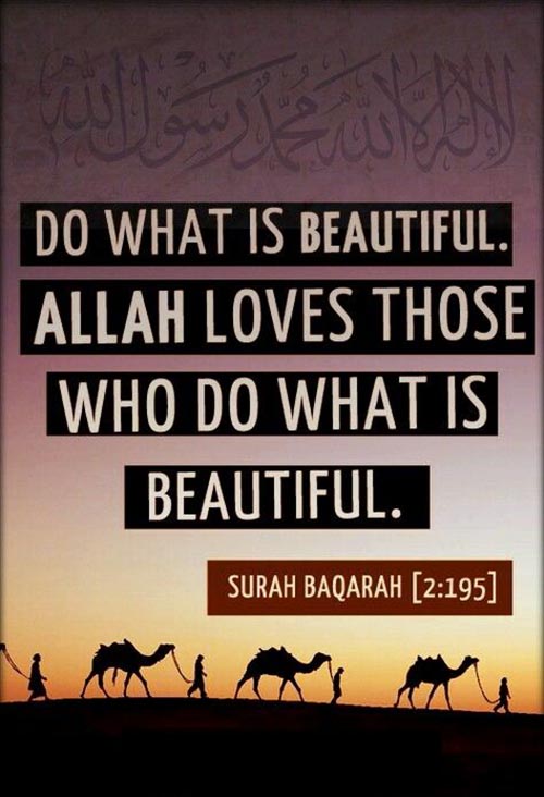 Do what is beautiful. Allah loves those who do what is Beautiful (2:195)