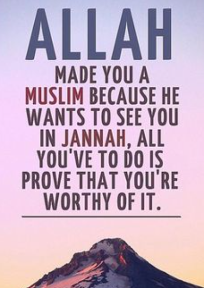 Allah made you Muslim because he wants to see you in JANNAH. All you have to do is prove that you’re worthy of it.