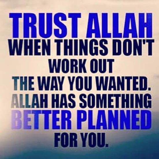 Trust Allah when things don’t work out the way you want. Allah has something better planned for you.
