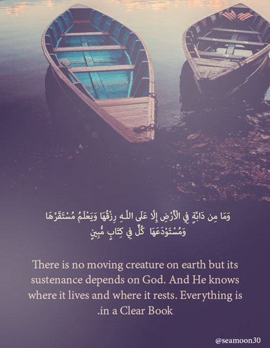 There is no moving creature on earth but its sustenance depends on God. and he knows where it lives and where it rests. Everything is in a Clear book