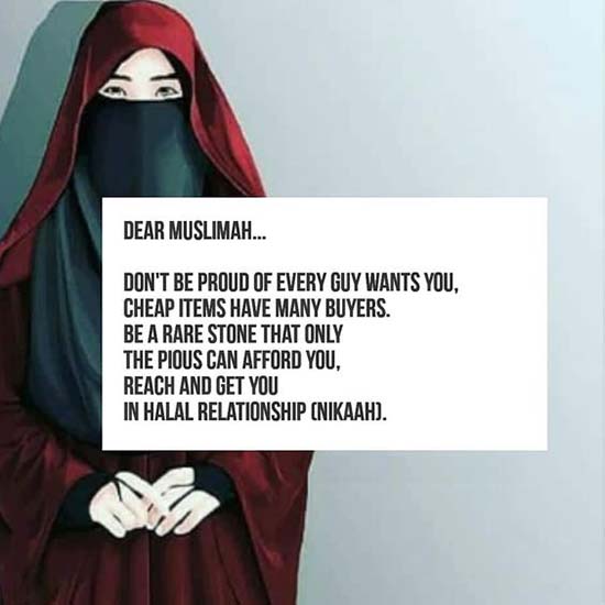 Don’t be proud if every guy wants you, cheap items have many buyers be a rare stone that only the pious can afford you, reach and get you into a Halal relationship (Nikkah)