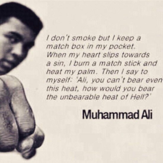 I don’t smoke but i keep match box in my pocket. When my heart slips towards a sin, i burn a match stick and heat my palm. Then i say to myself. Ali, you can’t bear even this heat. How would you bear the unbearable heat of Hell?