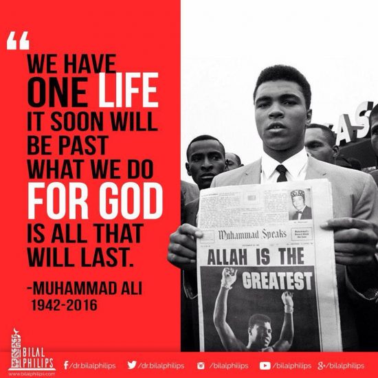 We have one life it soon will be past what we do for God is all that will last. – Muhammad Ali 1942 – 2016