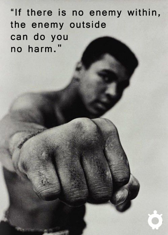 Champions aren’t made in gyms, Champions are made from something they have deep inside them a desire, a dream, a vision, they have to have the skill, and the will, but the will must be stronger than the skill.