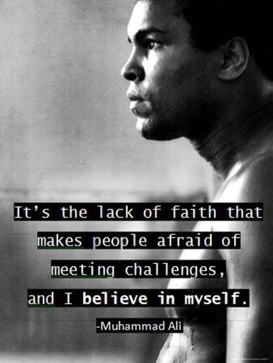 It’s the lack of faith that makes people afraid of meeting challenges, and i believe in Myself. Muhammad Ali Quotes