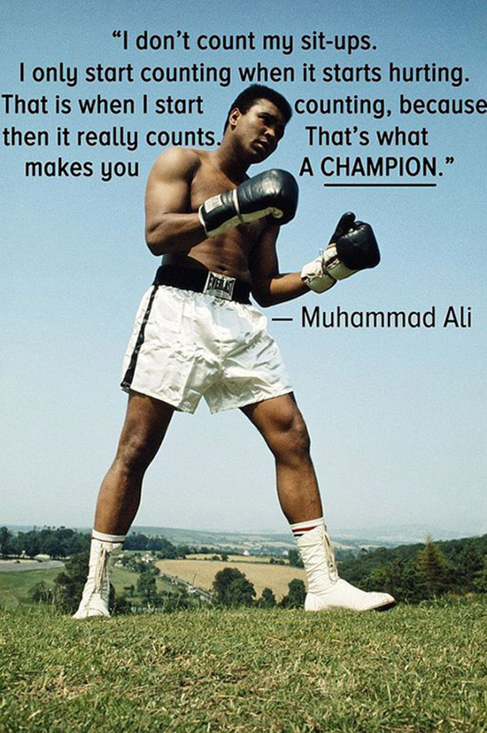 I don’t count my sits-ups, I only start counting when is starts hurting. That is when i start counting, because then i really counts that’s what makes you. “A Champion”.