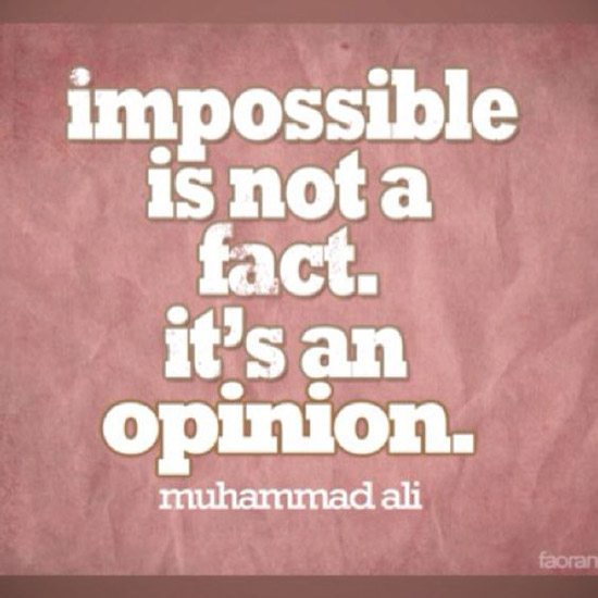 Impossible is not a fact. It’s an opinion. impossible is not at declaration. It’s a dare. Impossible is potential. Impossible is Temporary.