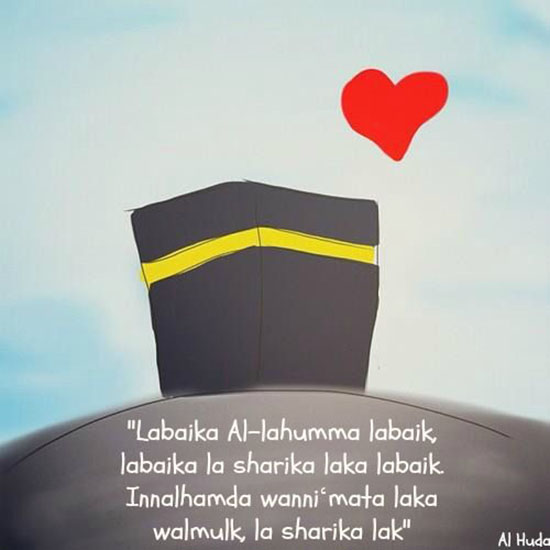 Here I’m o Allah (in response to your call), Here I am, here I am you have no partner here I am indeed all praise grace and sovereignty belong to you have no partner.