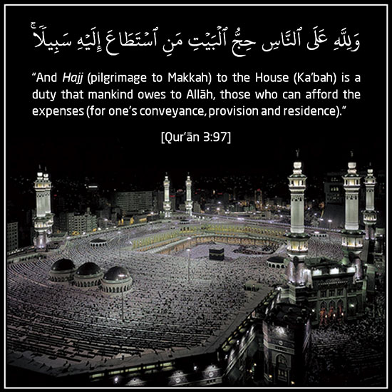And Hajj (Pilgrimage to Makkah) to the house (Ka’bah) is a duty that mankind owes to Allah, Those who can afford expenses (for one’s conveyance, provision, and residence.) [Quran 3:37]