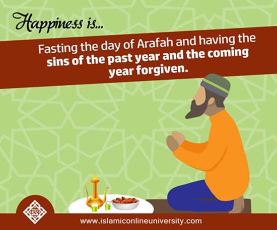 Happiness is… Fasting on the day of Arafah and having the sins of the past year and the coming year is forgiven.