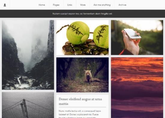 A very minimal masonry three column tumblr theme for writers, portfolio, photographers. The infinite scrolling is also an interesting feature of this responsive theme.