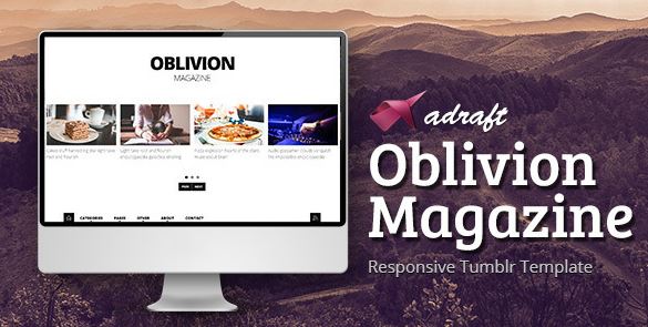 This is Oblivion Magazine – most rated & sold Theme of envato. Its highly responsive Tumblr template for any kind of journalists or publishers. Just write an article and assign it to it’s category or even feature it in the infinite carousel.