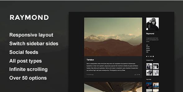 Raymond is a single column sidebar Tumblr theme. The content focused layout is especially designed for photographers and writers.