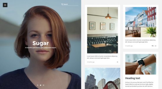 Sugar is a Tumblr theme using a Variable Grid Layout. Your collection will be beautifully displayed on any device. It works just like your own Look Book!
