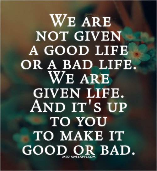We are not given a good life or a bad life. we are given life. and it’s up to you to make it good or bad.