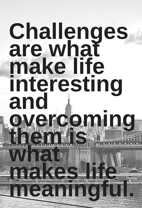 Challenges are what make life interesting and overcoming them is what makes life meaningful.