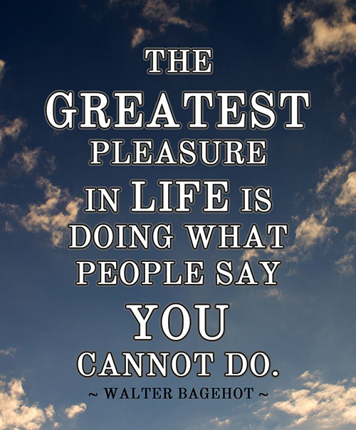 The greatest pleasure in life is doing what people say you can not do. – Walter Bagehot