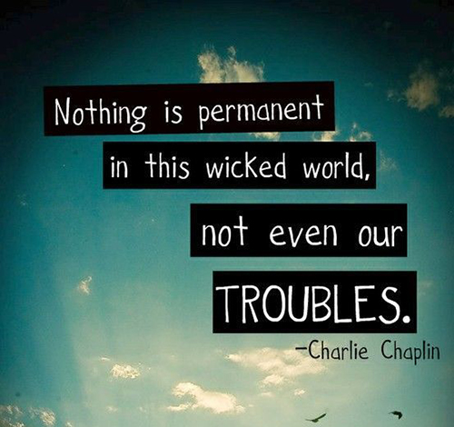 Nothing is permanent in this wicked world, not even our troubles. – Charlie Chaplin.