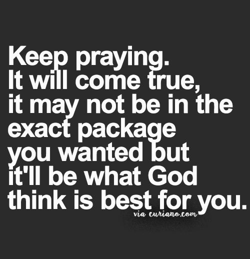 Keep praying. it will come true, it may not be in the exact package you wanted but it’ll be what god thinks is best for you.