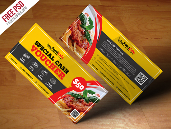 Download Food Cash Voucher Template Free PSD. This Cash Voucher or discount coupon is for Food businesses such as restaurants, Food cafes, fast food, pizza, bar-b-q, and many more.