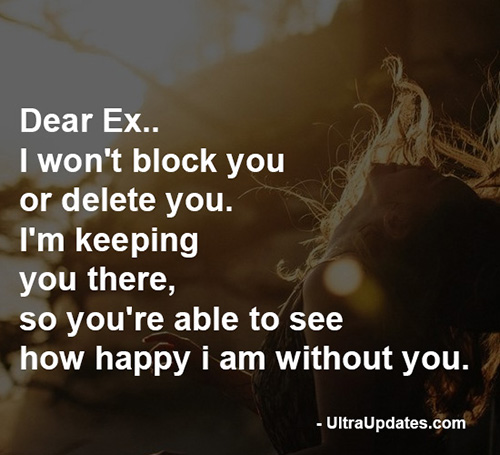 Dear Ex… I won’t block you or delete you. I’m keeping you there, so you’re able to see how happy I am without you.