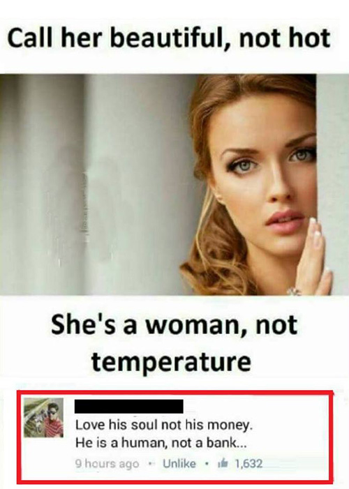 Love is soul, not his money he is human, not a Bank.