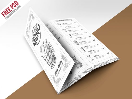 Download Free Vintage Style Bar Menu TriFold Brochure PSD Template. This Vintage Style Brochure PSD is a trifold type drink menu that is great for any summer drinks menus, such as a beach restaurant, a bar, club, lounge, pub, disco, etc.