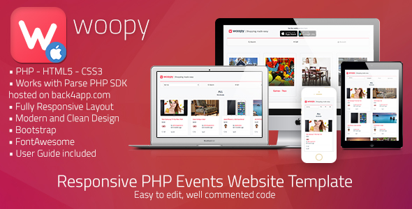 Made from iOS and Android apps makers, Woopy is a Responsive HTML/CSS Website Template where you can browse and post listings on the go, new or used stuff you want to sell. You can search for keywords, category, city/state and distance radius, chat with sellers, log in with Facebook or email, like and share ads, and a lot more.
