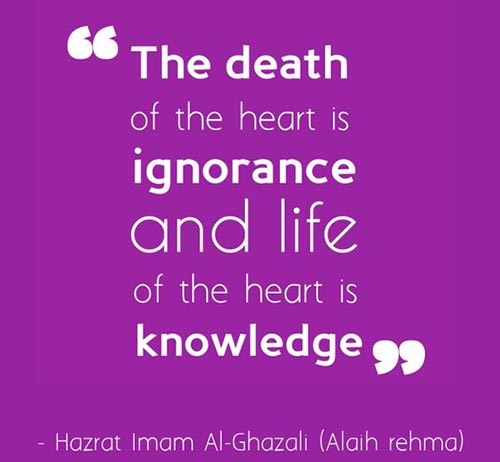 The death of the heart is ignorance and the life of the heart is knowledge. Hazrat Imam Ghazali. A.R