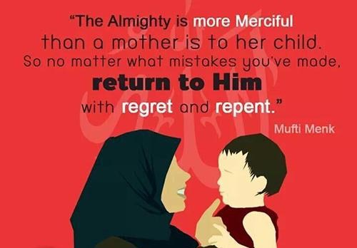 “The Almighty is more merciful than a mother is to her child. So no matter what mistakes you’ve made. return to Him with regret and repent.” – Mufti Menk.