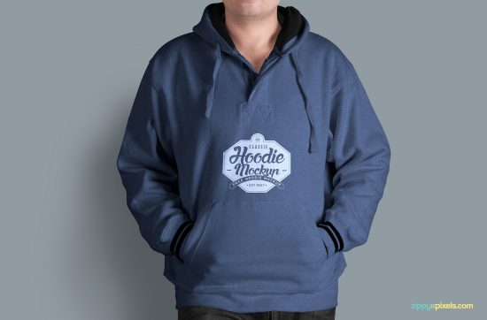 This outstanding free hoodie mockup with multiple customization options that can help you foresee how your apparel designs will look like on a printed hoodie. The included layered PSD file gives you complete control for replacing the logo design and customizing the color schemes for various parts of the hoodie. There’s more, you also get to edit the fabric texture effect and change the background according to your design needs.
